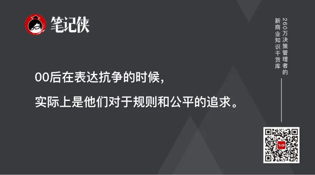 我之前跟大家讨论这个话题的时候,大家有一个共识:00后在他们表达抗争的时候,他们背后的价值观实际上是他们对于规则和公平的追求。