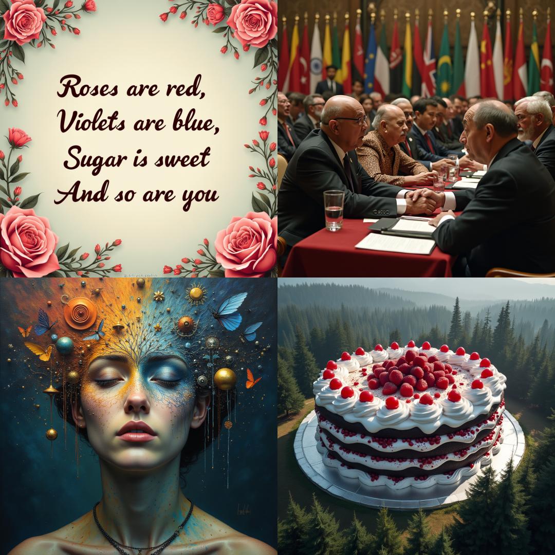 文字的生成在图像、视频生成中非常重要,许多模型容易混淆看起来相似的字母。FLUX.1可以处理重复字母的棘手单词,例如生成一个黑森林Flux Schnell蛋糕: