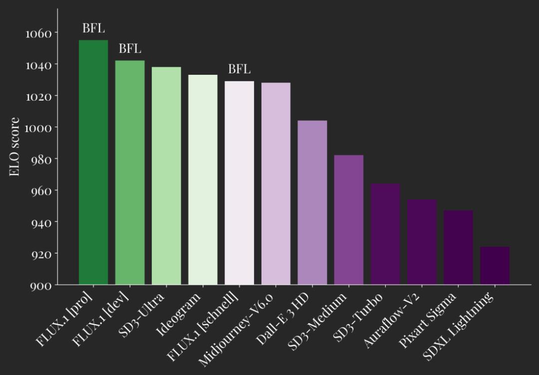 ▲FLUX.1 ELO分数与主流模型对比