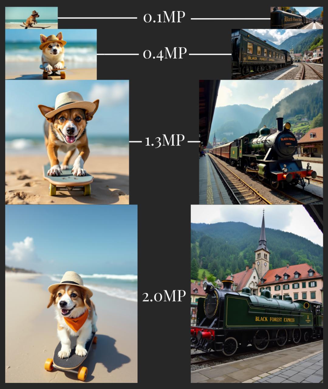 此外,所有FLUX.1模型均支持0.1和2.0百万像素的多种宽高比和分辨率。
