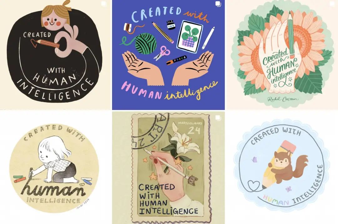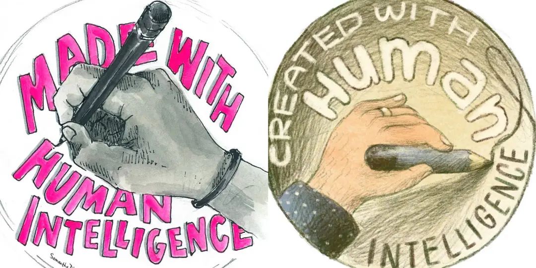然后,她把这个标志分享到了博客,大家可以免费下载,用在自己的网站、帖子、作品集,从而告知访客,这些创作和 AI 无关。
