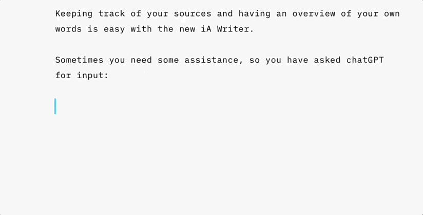 去年 11 月,iA 在 Writer 7 版本推出了一个新功能——标记用户复制到文档里的 AI 生成文本,AI 也可以是作者。