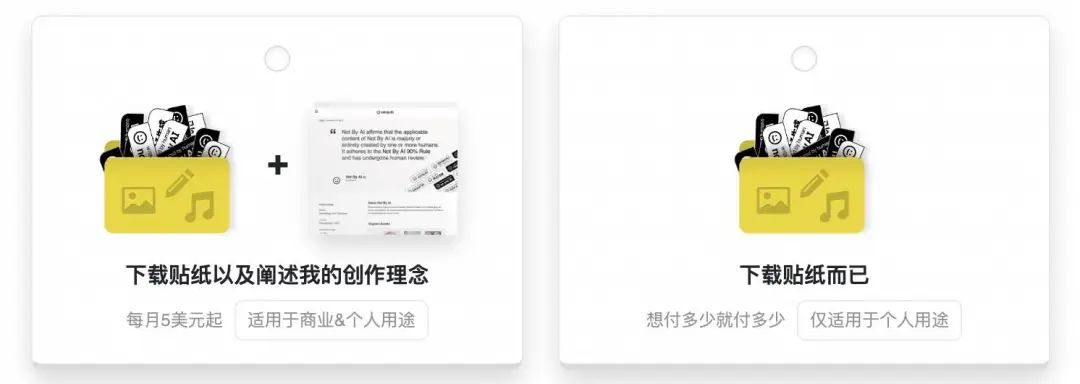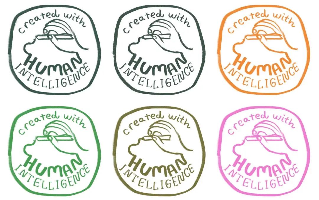 不管是网站、视频、书籍还是艺术创作,对于非商业用途的作品,只要人类原创内容达到 90%,就可以免费使用这个电子贴纸。如果是商用的,也可以注册并付费使用。
