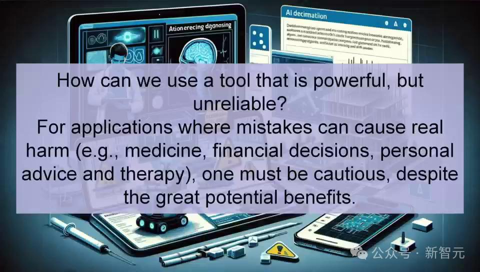 陶哲轩承认,在医疗、财务决策等领域,AI的安全性真的还没有达到标准。尽管有许多潜在的好处,我们依旧需要抱持谨慎的态度。