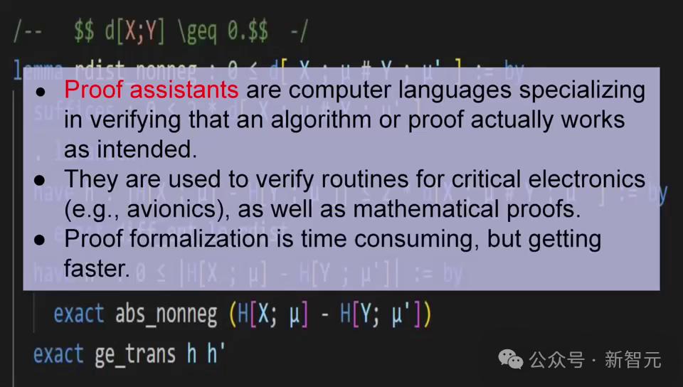 辅助证明软件类似于一种计算机编程语言,但输出并不是可执行程序,而是用于验证某个陈述是否正确。与AI不同,这类软件可以100%按照程序设定运行。