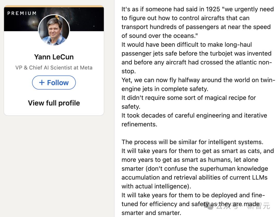 英雄所见略同,LeCun在谈到AI的安全性问题时,也喜欢将其与飞行器做比