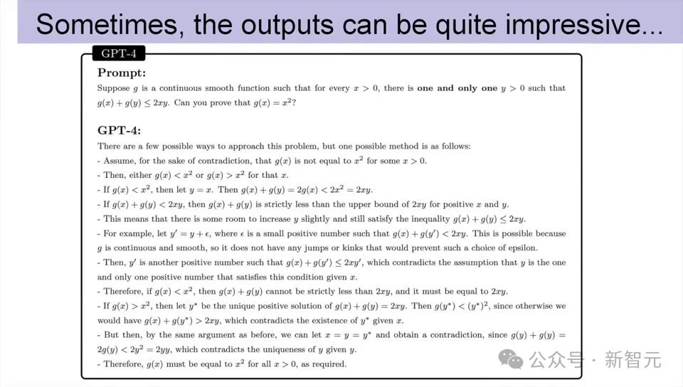 看起来更加离谱且难以理解的是,大模型有时能成功解决非常复杂的数学证明题,比如——