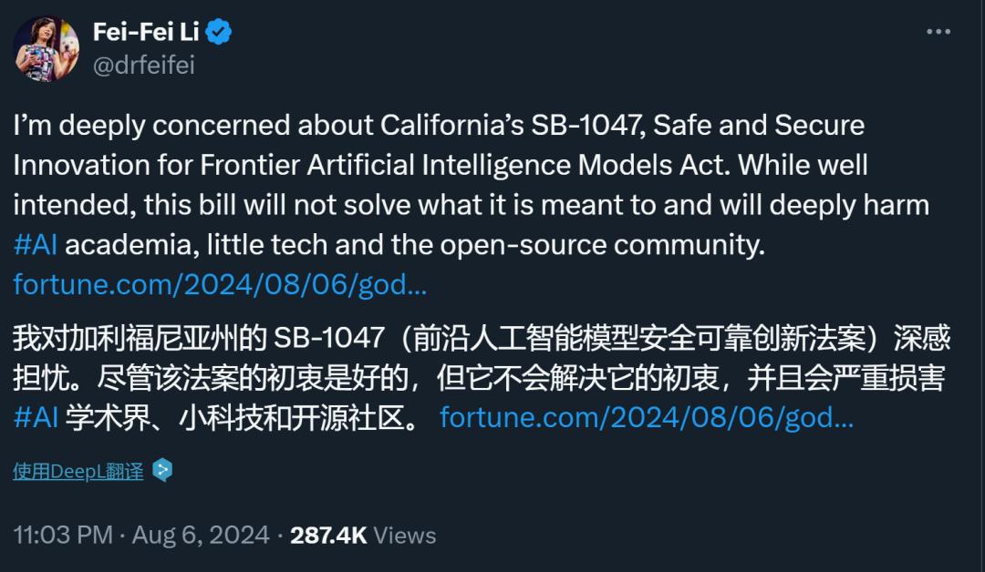 https://fortune.com/2024/08/06/godmother-of-ai-says-californias-ai-bill-will-harm-us-ecosystem-tech-politics/?abc123