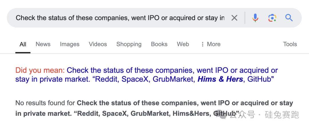 此外,SearchGPT具有ChatGPT的一定能力,比如,它可以根据输入的一系列公司名称,搜索其最新的状态,IPO/ M&A/ 私募状态。