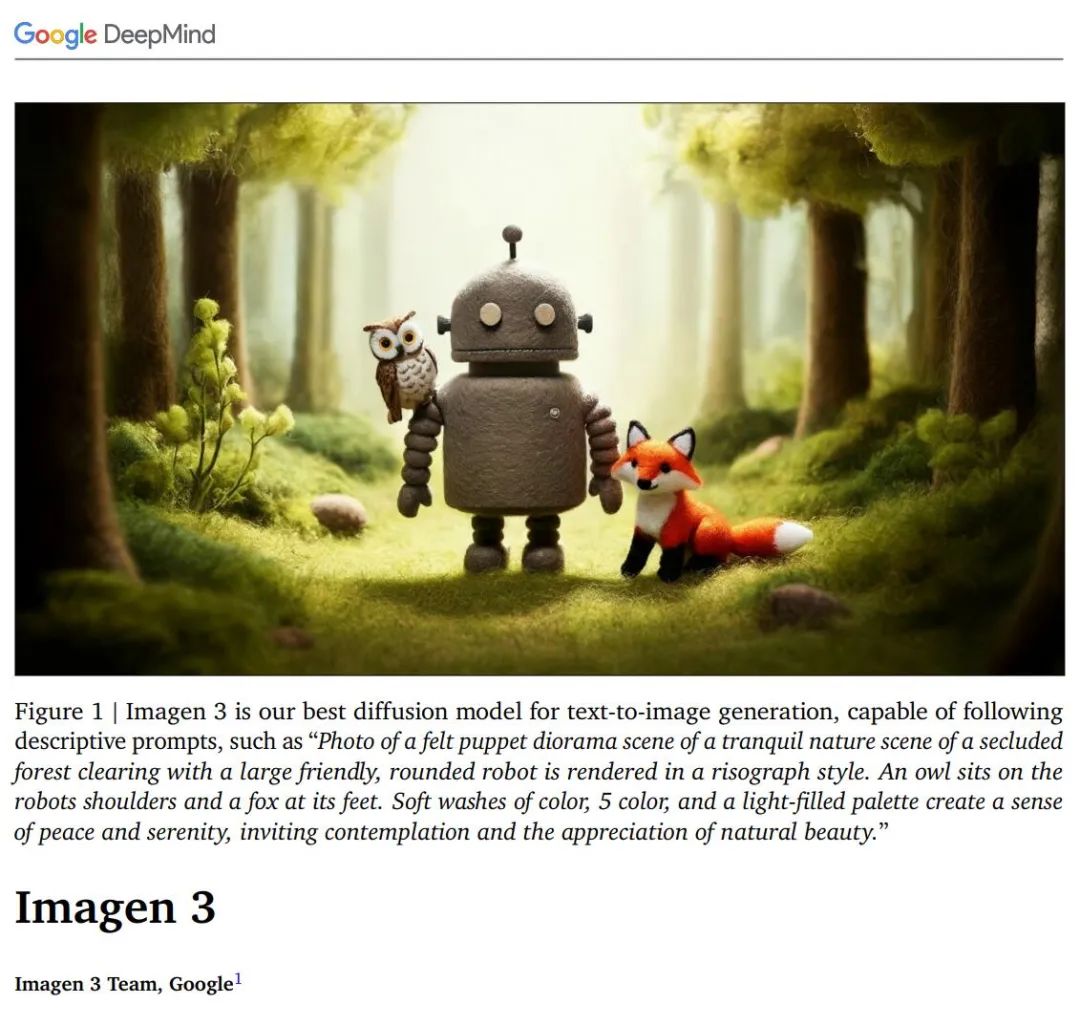 谷歌的文生图新模型 Imagen 3 最早是在 5 月份的 I/O 大会上发布的。该模型在生成细节、光照、干扰等方面进行了优化升级,并且理解 Prompt 的能力显著增强。随着今天的发布会,Google DeepMind 在 arXiv 上提交了 Imagen 3 的论文: