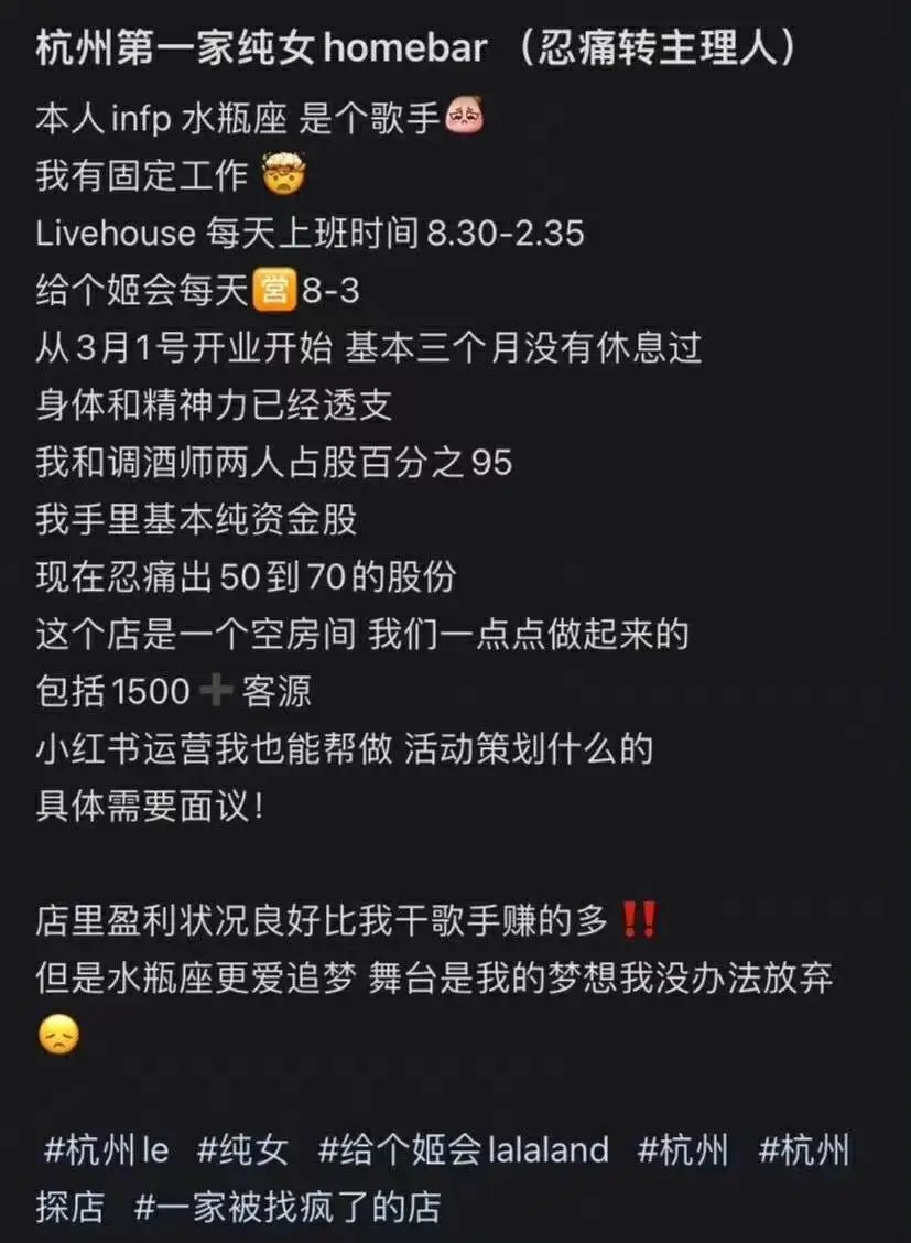 因经营不佳停业的homebar不在少数,还有一些因为扰民遭到邻居举报。在这条赛道赚大钱,比斜杠青年和裸辞er想的要难不少。