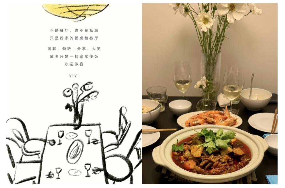 还有一种比美容院、咖啡店更显腔调的“home+”生意,那就是结合了小资味和文青气质的家庭餐桌。比如开在三里屯的“yiyi的餐桌”,标明了不是餐厅也不是私厨,只是“我家的餐桌和客厅”。