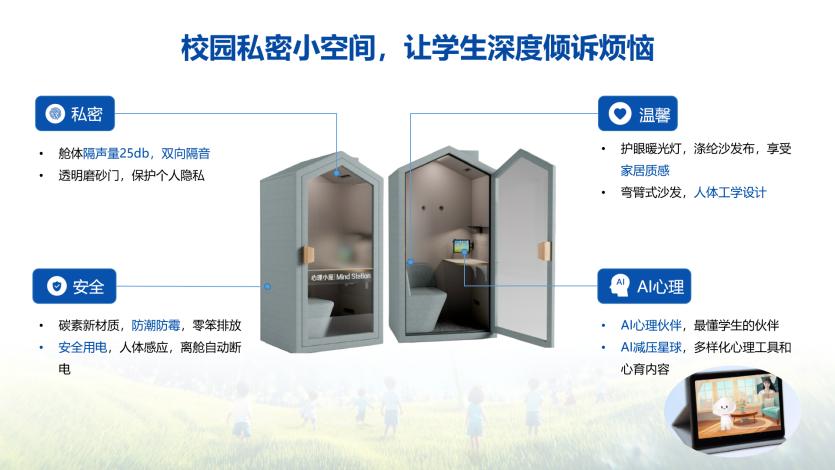 两家公司的做法也基本相同,均是先通过向基础大模型投喂更加专业的数据库,调教出垂类AI「讯飞小星」和「EmoGPT」,然后在学校里设立特定的「心理小屋」,在屋内配置搭载了垂类AI的硬件设备,通过与学生的对话评估对方的心理状态,并将报表发送给学校。