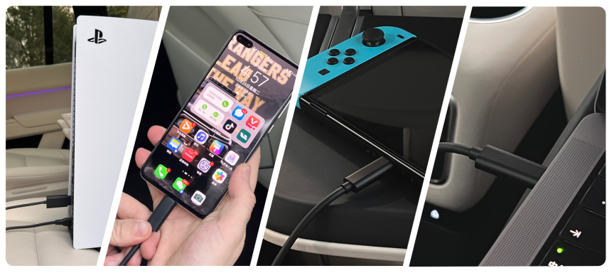 2022年理想L9上市,二排折叠大屏是重要卖点。虽然被戏称冰箱沙发大彩电,但这块屏幕的匹配功能确实做在了用户心坎。除了自带娱乐设施,它还支持外接投屏功能。小到手机和switch,大到笔记本电脑和PS5都可以用,想打什么游戏任君挑选。 理想用给 L9 的车内屏幕搭配了极其丰富的输入接口,这样不需要太多开发,也不需要用户特地学习,手边的设备带上车就能用,如果接入 Xbox Seris s,正好可以把主机塞进扶手箱里,不需复杂走线或改装供电。