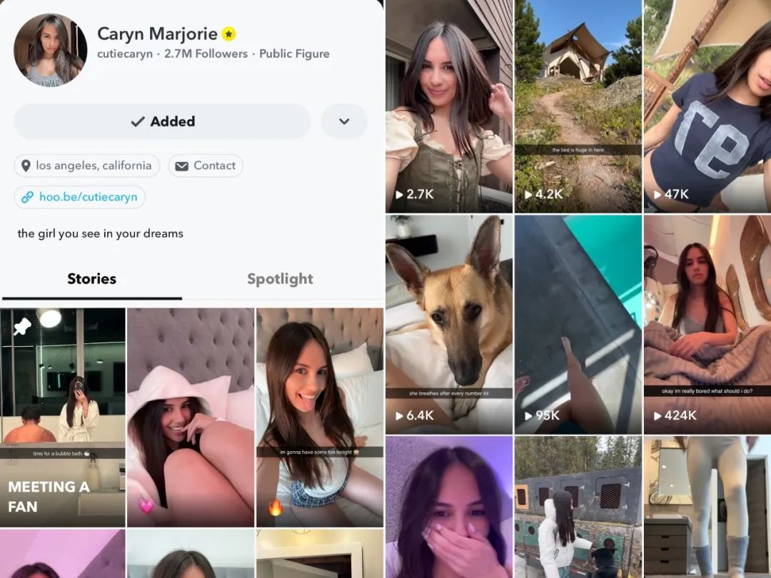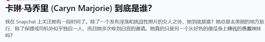 Caryn Marjorie是一个00后的美国专职网红,在SnapChat上拥有180w粉丝(现在是260w),每个月浏览量达到10亿次。