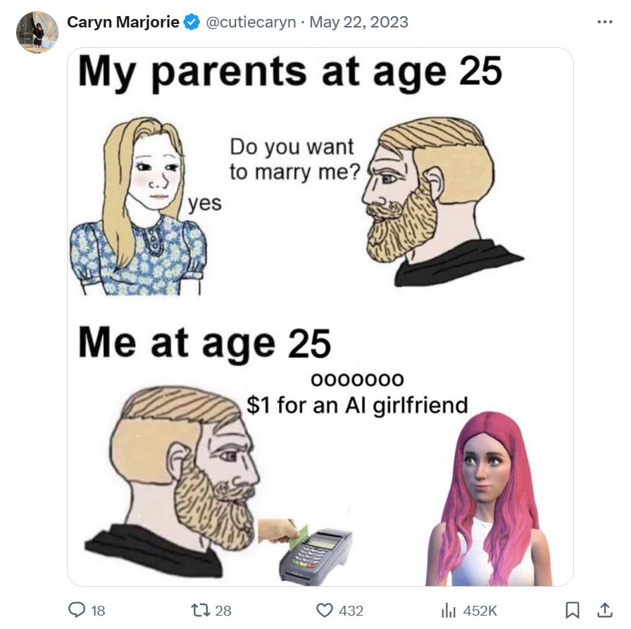 相信有很多人都看出来了,CarynAI没有多高的技术壁垒,它的原型Marjorie也不是出挑的美人儿,但CarynAI就是凭借“第一个AI伴侣+网红IP”的产品设计,攫取了大家的目光和钱包。