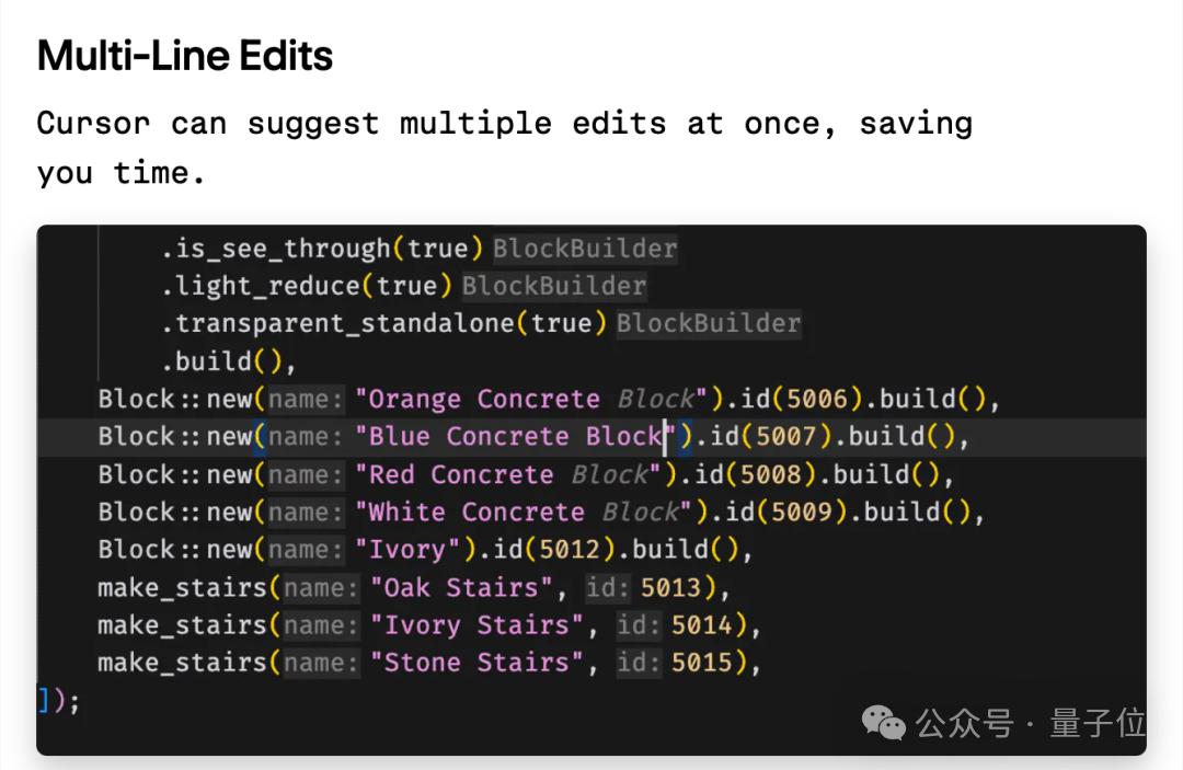 又比如多行编辑功能,AI一次性建议对多行代码同时修改,节省更多时间,经常用于格式调整。