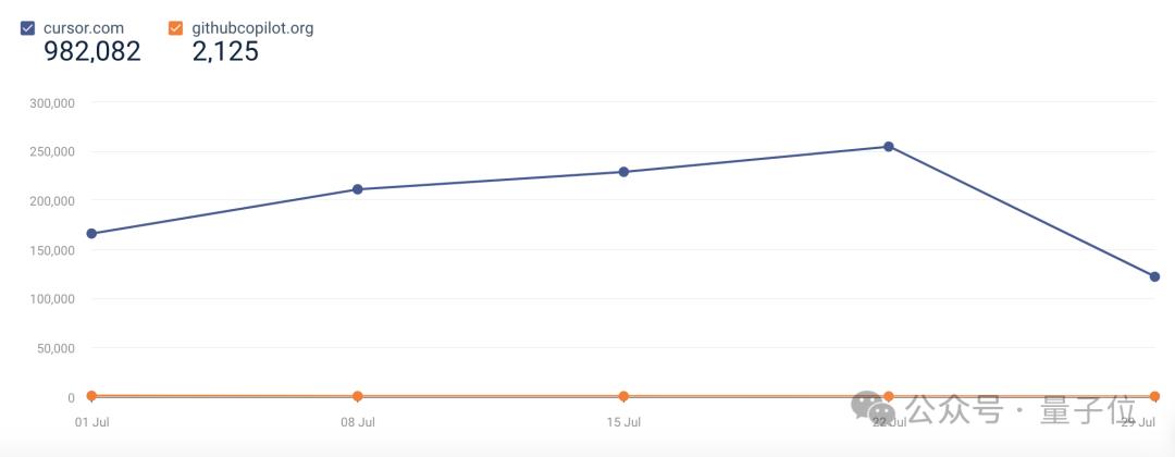 目前,Cursor的流量已经超过了AI代码编辑器界的开山老大哥GitHub Copilot。