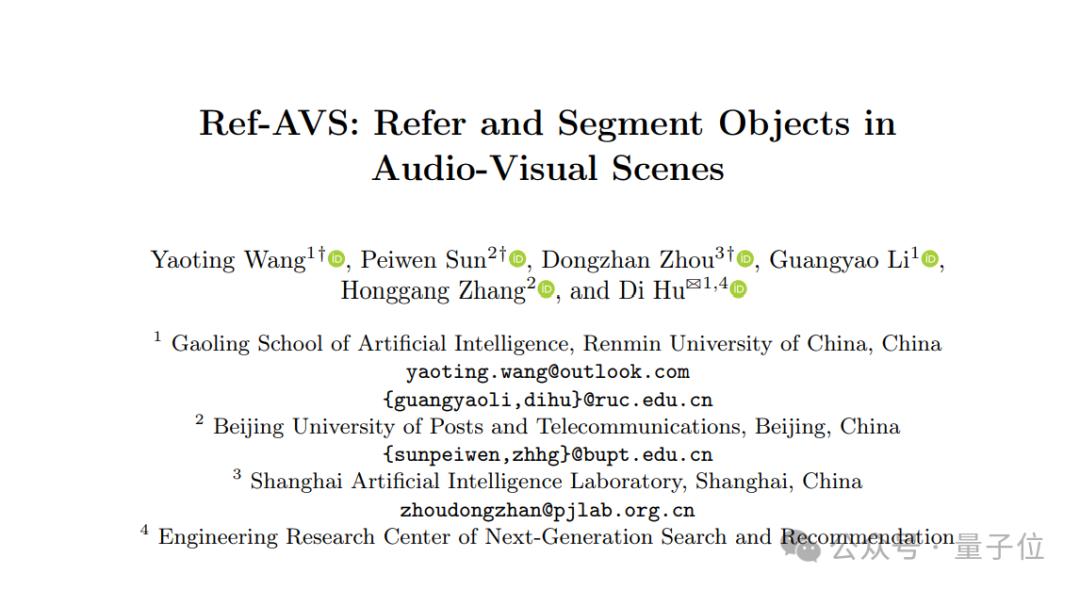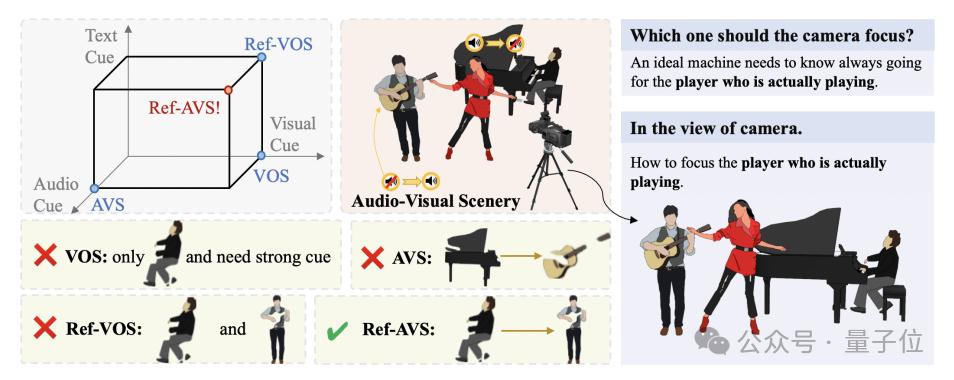 来自人大高瓴GeWu-Lab、北邮、上海AI Lab等机构的研究人员提出Ref-AVS(Refer and Segment Objects in Audio-Visual Scenes,视听场景下的指代分割),让AI能看、会听,更懂真实物理世界。
