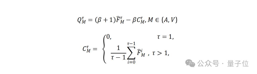 Cached memory需要存储从开始到当前时刻的时序平均模态特征,以捕捉时序变化中多模态信息的变化幅度。多模态特征(QV, QA)计算方式如下: