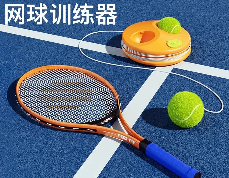 在运动市场,这种设计的训练器有很多,比如乒乓球训练器、羽毛球训练器,会把球固定在球拍或者其他物件上,便于单人训练,免去了“没有对手”“疲于捡球”“捡不回球”等困扰。网球回弹训练器的研发思路也是基于此。
