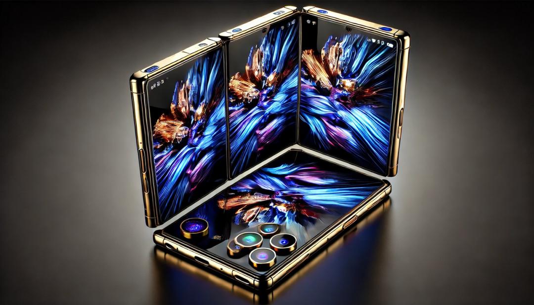 尽管华为三折叠屏的真机信息还是个谜,但我们可以让 AI 来一场头脑风暴,想象一下这款三折叠屏手机的模样。