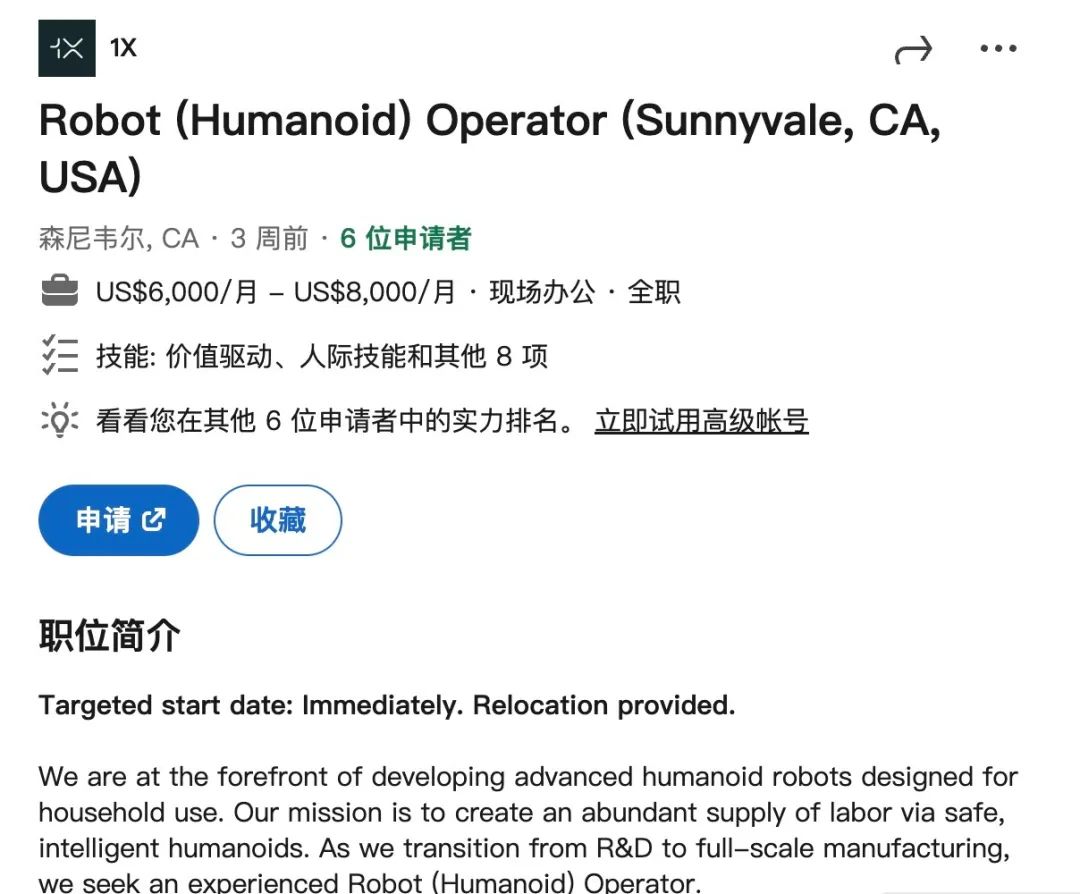 (图:在1X的领英上,这些操作员的招聘全是正式工,非外包,月薪6000-8000美元,大约是美国平均月薪的1.5倍)