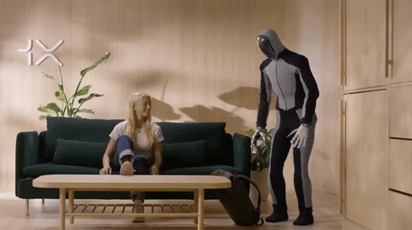 从NEO宣传片可以看出,1X在营造的是一个“邻家哥”一样的“暖男”形象,他身着紧身休闲服,凸显出类似人类男士的肌肉线条,他还会轻手轻脚地照顾家人起居,也会在你出门之前整理好包裹,并在分别之际给你一个温暖的拥抱。