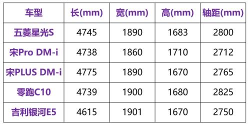 五菱星光S的车身长度是4745mm,比宋PLUSDM-i短了30mm,但高度比宋PLUS DM-i多了13mm,而且轴距比宋PLUS DM-i长了35mm,空间很有优势,525mm的第二排坐垫长度和985mm的二排座间距是同级别最长。定位紧凑级SUV,但是后备箱留得理想L6还大。而且全系标配60kWh的电池容量,换成比亚迪和零跑都要再贵两三万。