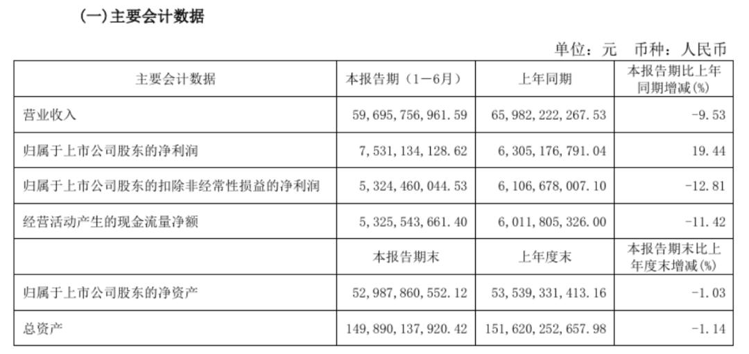 8月29日,伊利发布了2024年上半年财报。数据显示,2024上半年伊利营收596.96亿,同比下滑9.53%;归母净利润75.31亿,同比增长19.44%。值得注意的是,在剔除存货计提冲回等影响后,伊利的扣非归母净利润只有53.24亿,同比下滑12.81%。