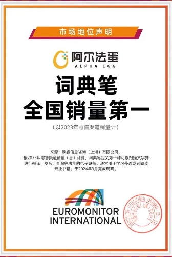 央视镜头“聚焦”的阿尔法蛋词典笔早已深得“父母心”,成为孩子“心头好”。据国际调研机构欧睿咨询发布声明认定,淘云科技旗下的阿尔法蛋词典笔荣获全国销量第一(以2023年零售渠道销量计)。词典笔D1更是上市仅半年,销量就突破200万支。