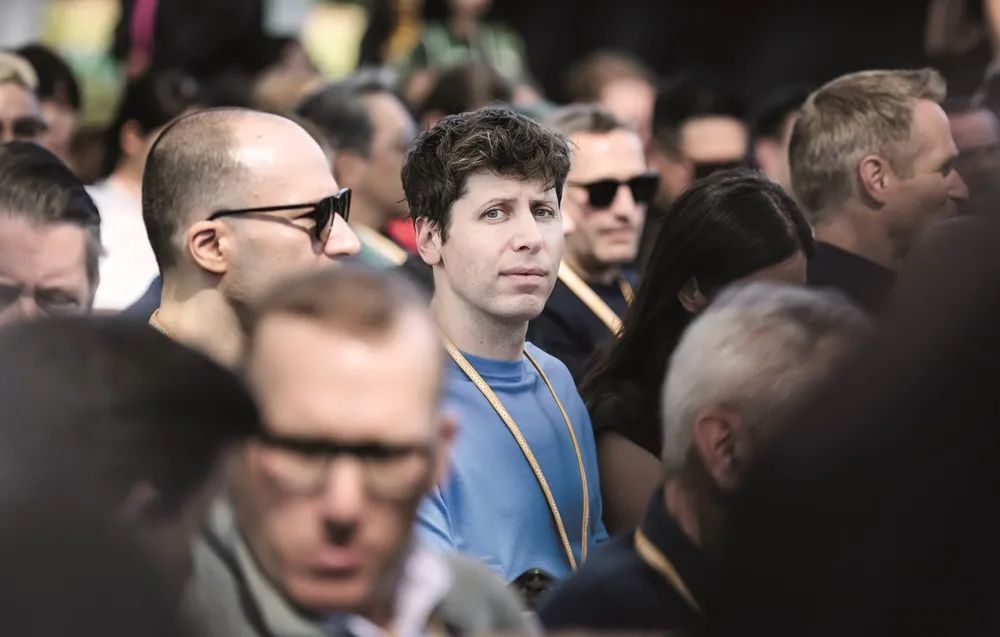 2024年6月10日,美国加州的苹果总部,OpenAI公司CEO萨姆·奥尔特曼(中)出席全球开发者大会(WWDC)。图/IC