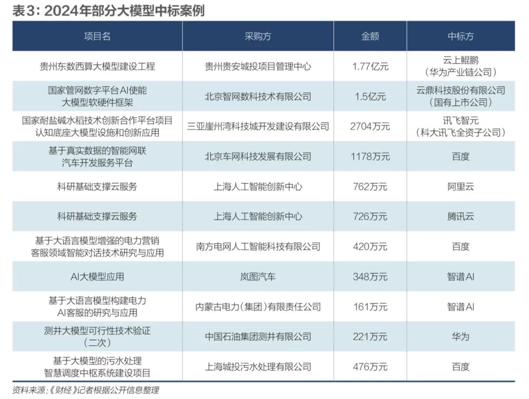 公开的中标项目中,算力和定制应用是绝对的主力,大金额订单多数为算力服务,这对于创业型公司来说竞争力并不明显。