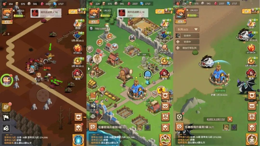 在海外市场,江娱旗下小队RPG手游《Top Heroes》(《王国之歌》)一直有稳健表现,这款游戏在前期保留了轰隆隆like大部分的探索和养成玩法,但随着主城持续建设,整体的玩法框架已经发生了变动,后期以SLG对抗体验为主。