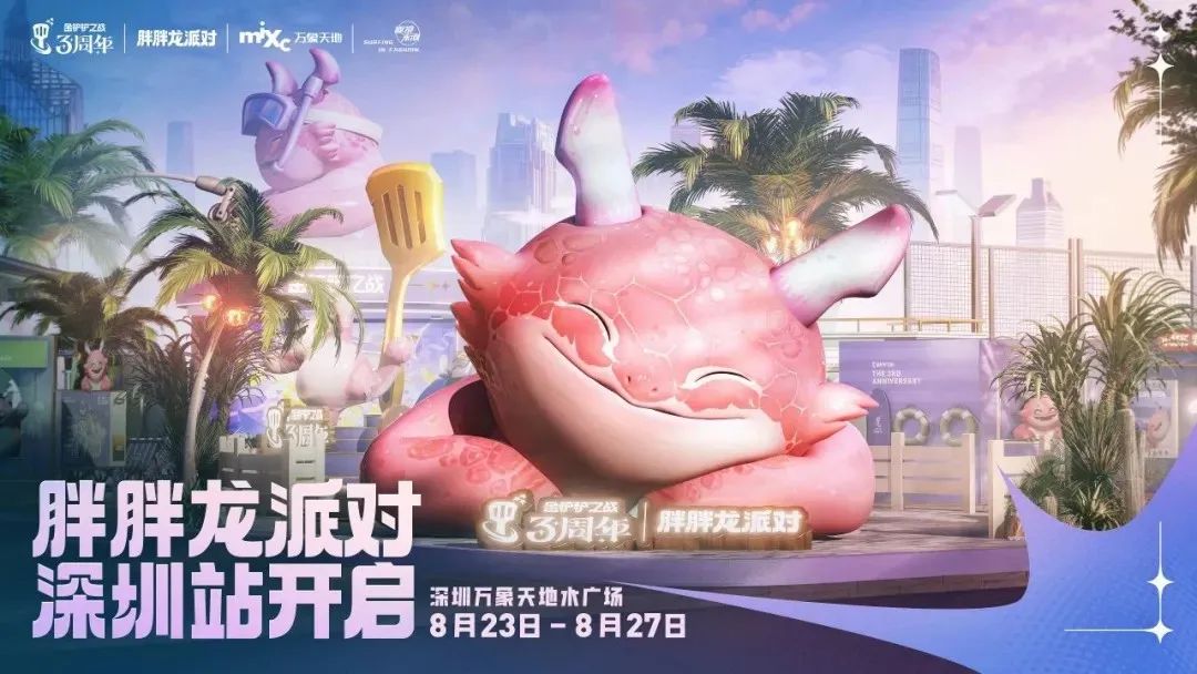 新赛季「魔法乱斗」在8月6日正式登场,也拉开了三周年帷幕,不仅推出了全新的周年福利、对局赠礼、庆典小小英雄来提高内容丰富度,还在深圳万象天地线下举办了“三周年胖胖龙派对”,让很多玩家近距离感受到了胖胖龙的魅力。