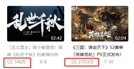 而且还请到影星陈小春演唱同盟主题曲《乱世千秋》,赛季PV和歌曲主题曲的播放量都各自达到了200万和300万级别。