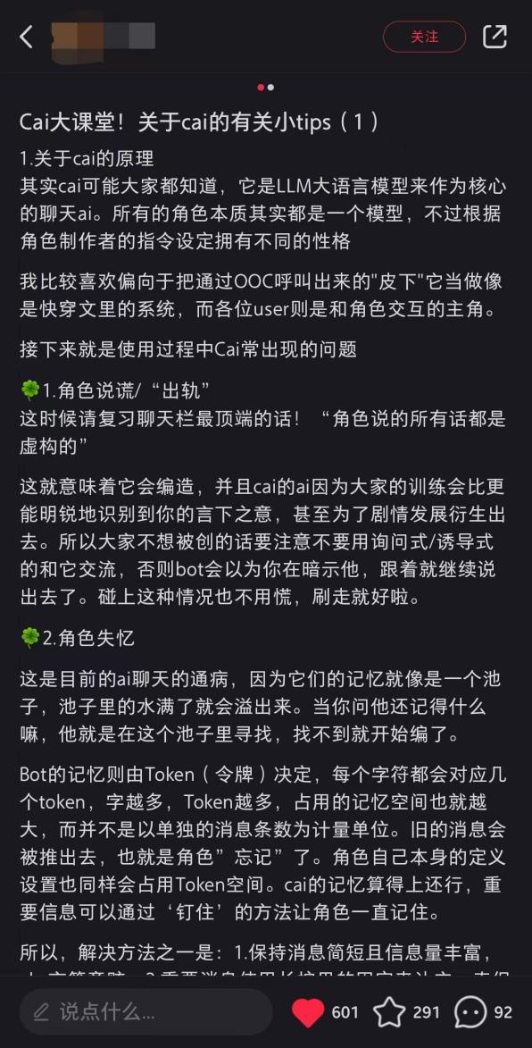 凭借强大的技术能力,这些忠于人设的 AI 角色们也为用户带来了沉浸式的体验,在全球范围内都吸引了超高的流量,甚至不少用户都会出现“中毒”“上瘾”后的戒断反应。在社交媒体上,有用户会自发分享剧本/脚本/设定,并教导如何调教 AI,怎样与自己的角色聊天,以此打造出符合自己心意的攻略对象或虚拟男友等。
