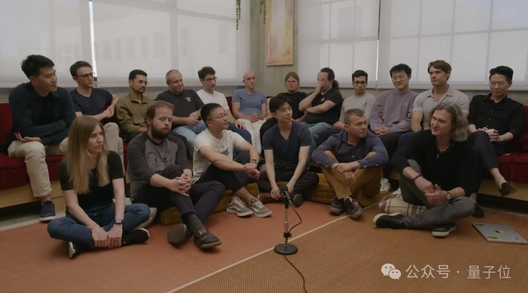 包括Zaremba在内的18名团队成员,在首席研究官Bob McGrew的带领之下围坐一团。