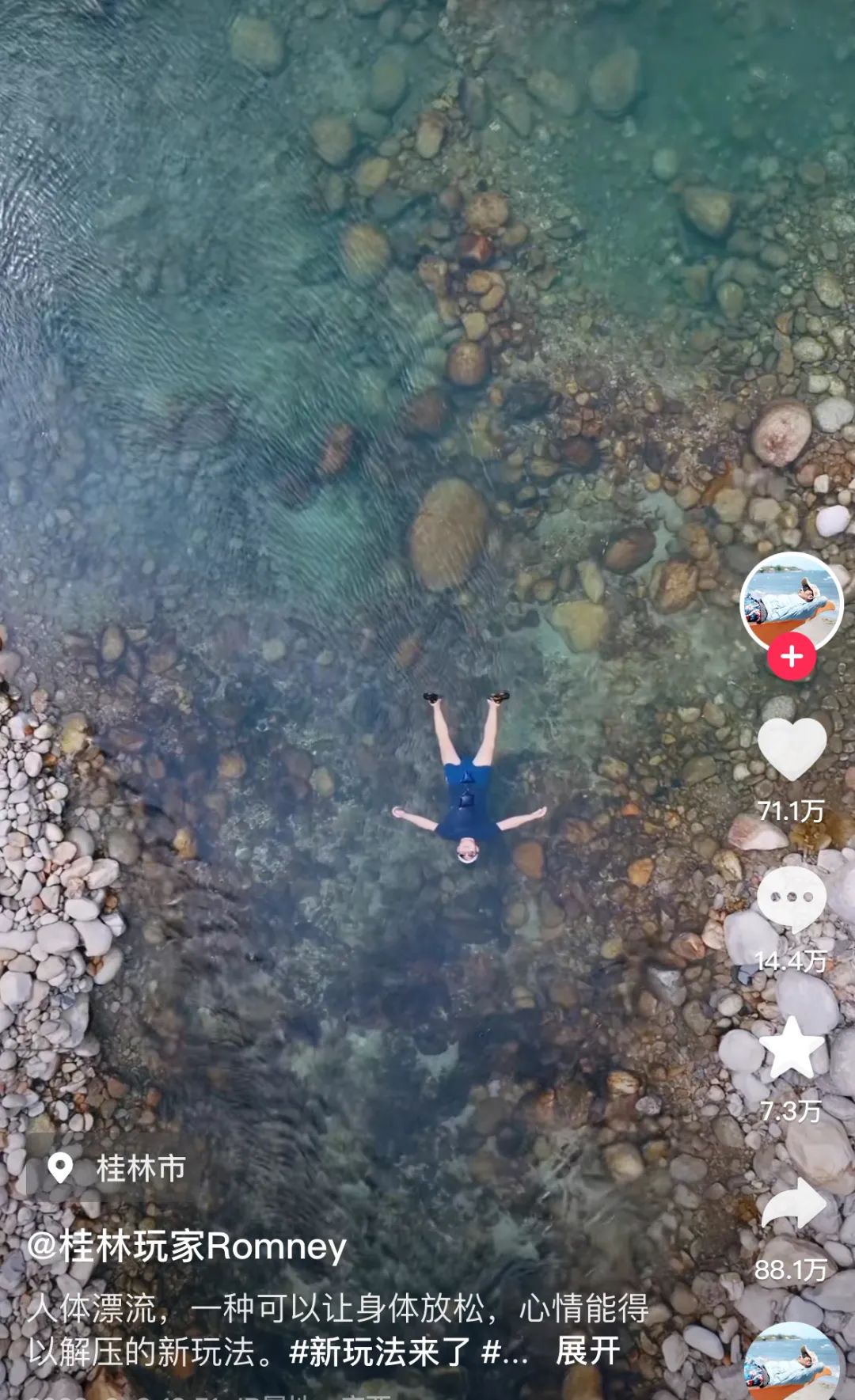 博主“桂林玩家”向中新经纬介绍称,所谓的“窝囊版”漂流其实就是躺在平静的水面上随波逐流。因为需要身体放松才能漂得舒服,耳朵在水里听不到外界的声音,让人感到轻松解压,七月时去的年轻人比较多。他也提醒说,一定要戴好护具,不要去湍急或落差大的河流。