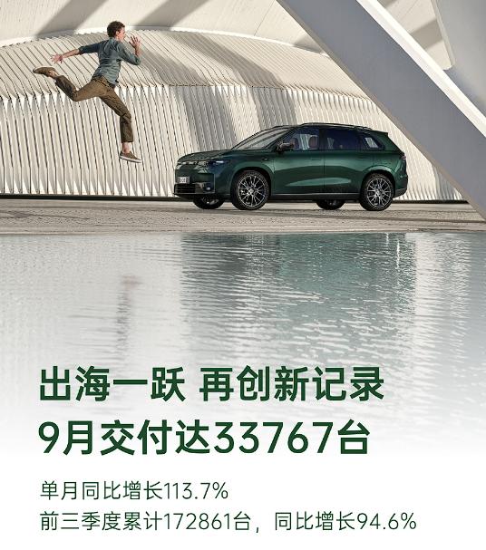 排在新势力第三名的是零跑汽车。9月,零跑交付33767台,同比增长113.7%,环比增长11.42%;前三季度累计交付17.3万台,同比增长94.6%。今年8月,零跑首次月销量突破3万,被外界戏称为“小理想”。值得注意的是,有第三方数据显示,零跑在9月第三周新增订单超1万,其中C系列SUV占比达到了80%。