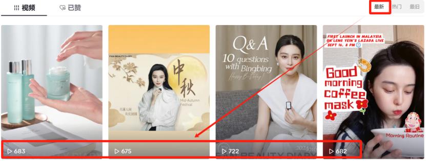 (2)内容定位不太清晰:范冰冰出海团队的内容定位,总体上比较模糊,视频很难“打爆”:从Fan Beauty Diary目前发布的20多条视频来看,除了范冰冰本人官宣出海的那条视频,是一个小爆款,接下来的视频,播放量很一般,其内容大部分是产品的生硬介绍,或者是范冰冰本人的中秋祝福、巴黎秀场聊天等。
