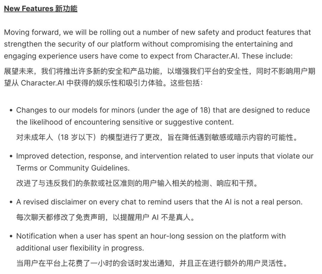 附上官方博客原文:https://blog.character.ai/community-safety-updates/