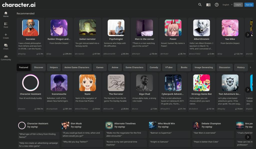 Character.AI 可以说是 AI 伴侣市场的领头羊。