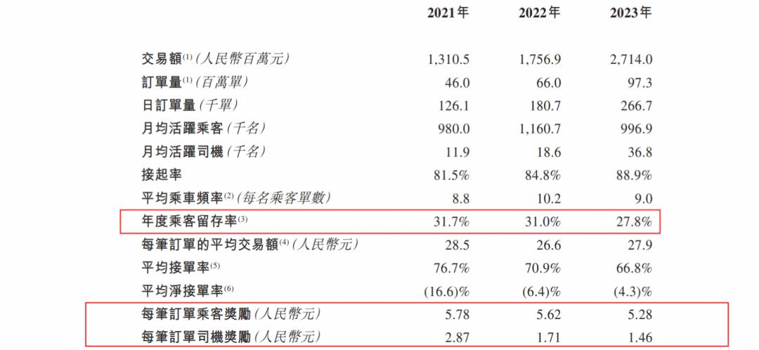 从如祺和曹操等相对小规模的网约车企业的招股书中,也能看到用户补贴的收缩。以如祺为例,在2021年—2023年,其面向司机的补贴从2.87元降到了1.46元;用户补贴则从5.78元,降至5.28元——用户补贴力度远高于司机补贴,透露出这个市场供大于需的现状。