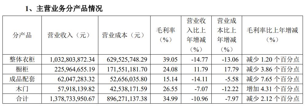 目前,好莱客的主要业务包括:整体衣柜、橱柜、成品配套等,同时涉足木门等业务。