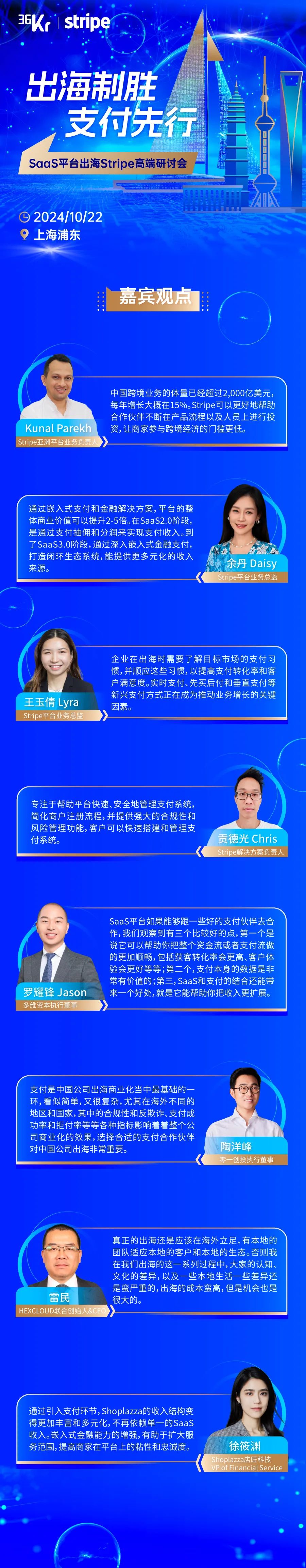 当本土化成为品牌出海的分水岭时,跨境支付为代表支付能力的重要性,还在持续上升。10月22日,“出海制胜,支付先行”SaaS平台出海Stripe高端研讨会在上海环球金融中心·柏悦酒店圆满落幕。
