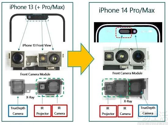 iPhone相关组件的进化,使得屏幕也完成了从“刘海屏”到“药丸屏”的变化