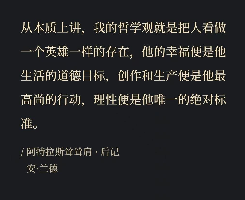 安·兰德强调“利己”是最高道德,肯定自由和理性在创造财富和改变世界中的决定性作用。这也是美国商业繁荣的根基。
