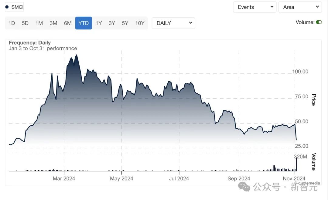 【导读】AI大牛股即将跌下神坛?10月30日,因审计公司安永提交辞职信,AI大牛股超微电脑股价暴跌33%,一夜损失近95亿美元。