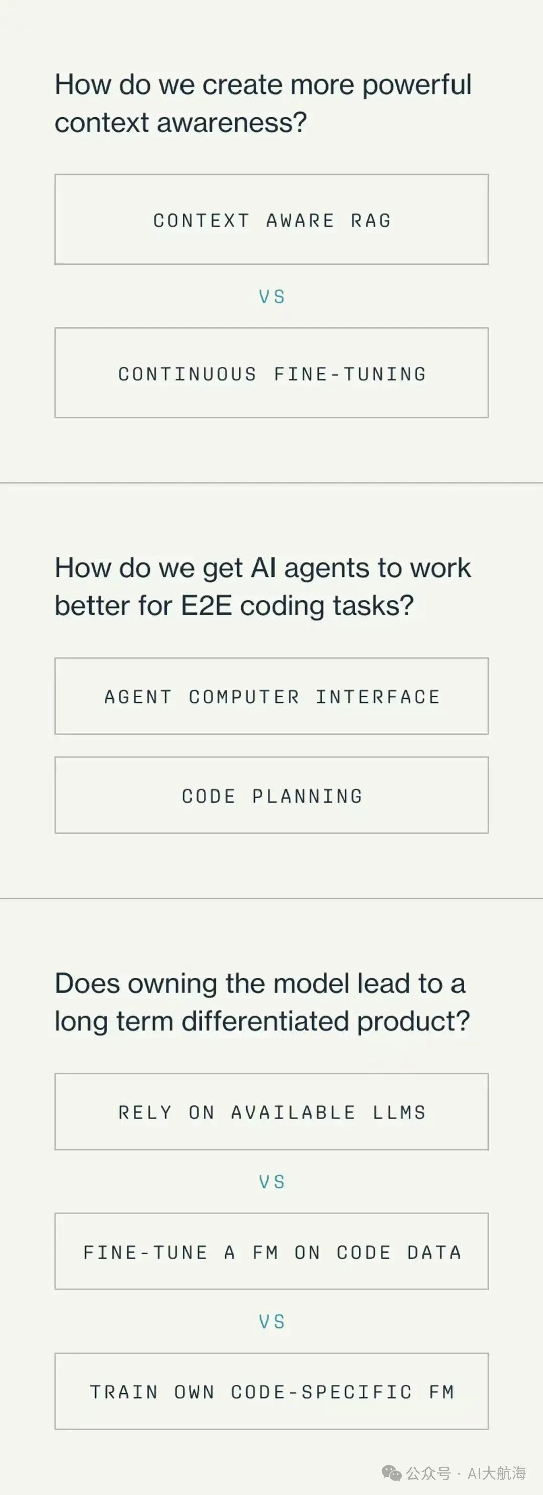 无论采取哪种方法,都需要解决一些技术挑战,来解锁更可靠的AI coding工具,更低延迟,更好的用户体验:
